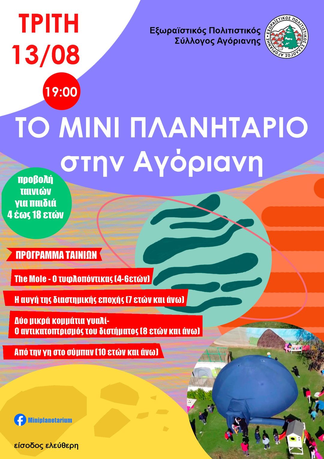 Ας ανακαλύψουμε τους αστέρες, τους πλανήτες και τους γαλαξίες! 🪐 💫☄️ Μία συναρπαστική και μοναδική εκδήλωση του συλλόγου μας για παιδιά όλων των ηλικιών (προνήπιο – λύκειο)! Μην το χάσετε! Είσοδος ελεύθερη!