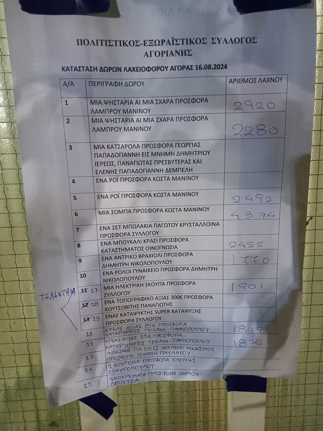 Εκκρεμότητες Λαχειοφόρου Πολ. Συλλόγου 16 Αυγούστου 2024