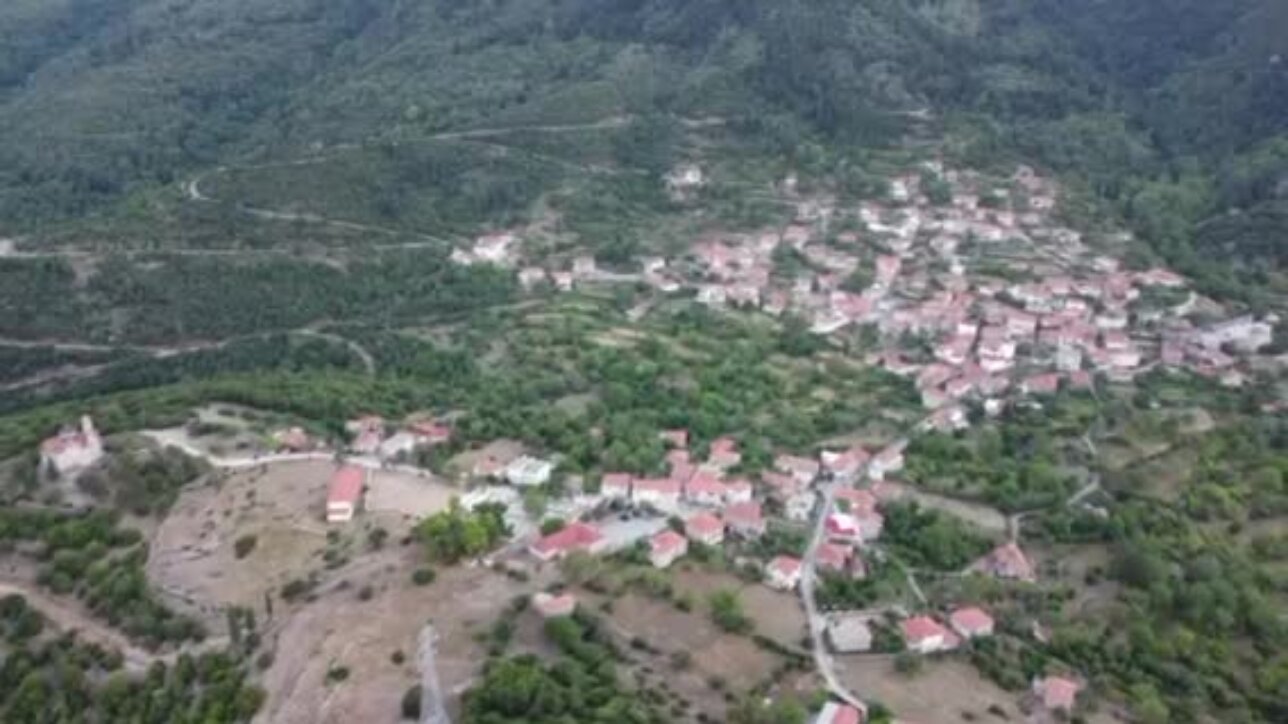 Χθεσινή απογευματινη λήψη από drone του χωριού μας (φαίνεται και ο χώρος του πανηγυριού στρωμένος με τραπέζια – καρέκλες)