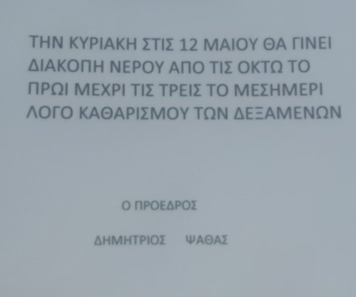 Uncategorized 10 Μάι 2024 Παρακαλούμε τούς κατοίκους νά συγκεντρώσουν νερό για τής ανάγκες τους.. Παρακαλούμε τούς κατοίκους νά συγκεντρώσουν νερό για τής ανάγκες τους.. Source admin